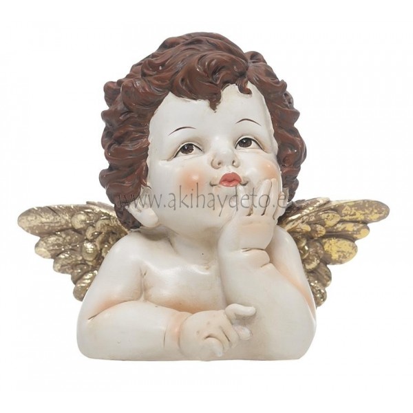Figura ángel decorativo en poliresina, medidas 18x11x15 cm