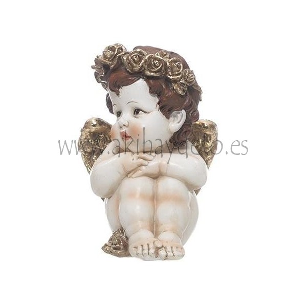 Figura ángel decorativo en poliresina, medidas 16x11x11 cm