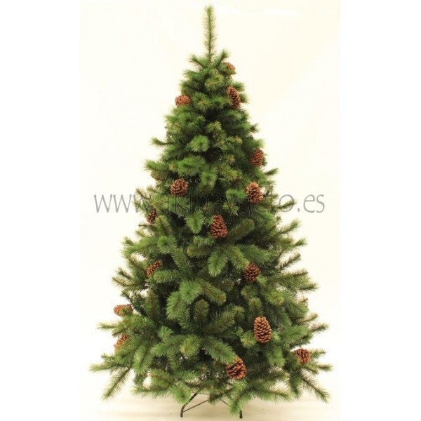 Árbol de Navidad artificial color verde con piñas, altura 180 cm.