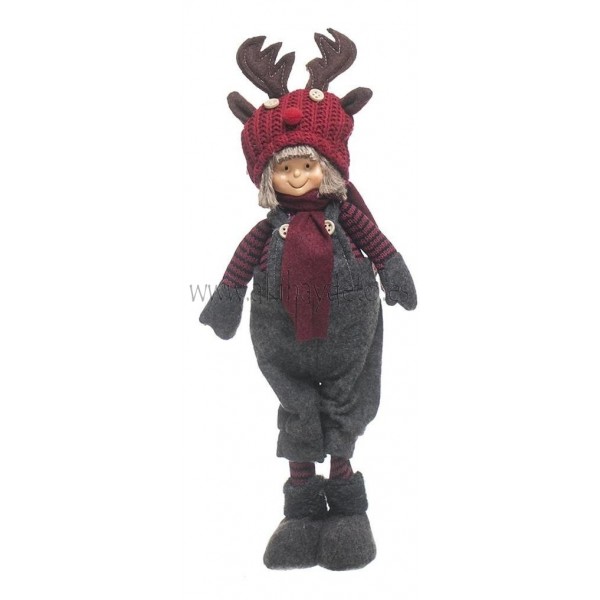 Muñeco niño decorativo con gorro de reno en tela, de altura aproximada 34 cm.