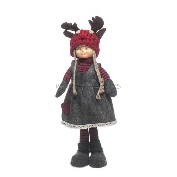 Muñeco niña decorativo con gorro de reno en tela, de altura aproximada 34 cm.