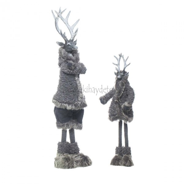 Decoración de Navidad, figura Reno en textil color gris. Disponible en dos medidas.