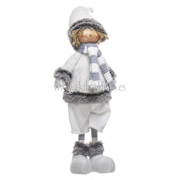 Muñeco niño decorativo en tela, de altura aproximada 34 cm.