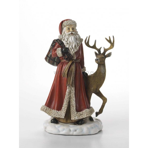 Figura decorativa, Papá Noel con Ciervo, en resina medidas 27x40,5 cm.