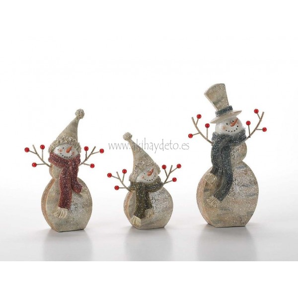 Set 3 muñecos de nieve en resina medidas 17,5x30,5 cm.