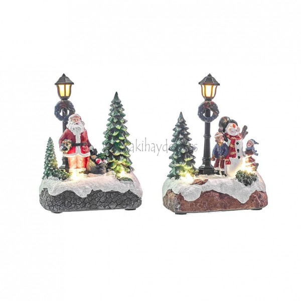 Decoración de Navidad, conjunto de dos escena navideñas con Led´s, en poliresina medidas 6x10x13 cm.