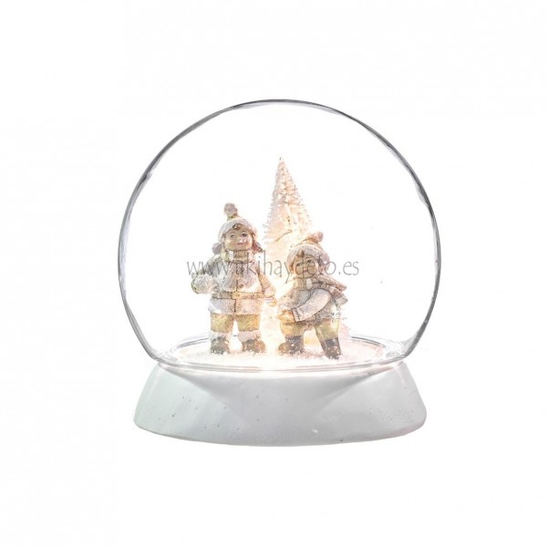 Campana cristal con niños, figuras decorativas con motivos navideños, medidas 13x14 cm.