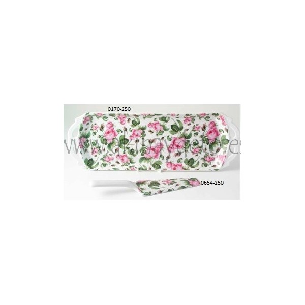 Set formado por Bandeja rectangular Cake c/asas medidas 45x15 cm y Espátula para tartas, en porcelana tapizada modelo Meses del Año Junio.