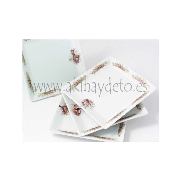 Bandeja cuadrada Milko en porcelana tapizada modelo patos, medidas 24x24 cm.