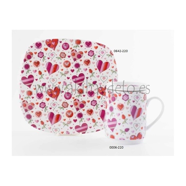 Bandeja cuadrada en porcelana tapizada modelo Love Hearts.