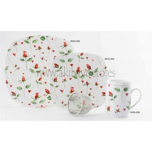 Bandeja cuadrada Rioja en porcelana tapizada modelo Romeo, medidas 25x25 cm.