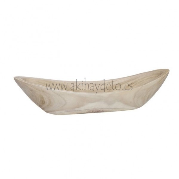 Centro decorativo con forma de "Canoa" en madera, medidas 57x17x13 cm.