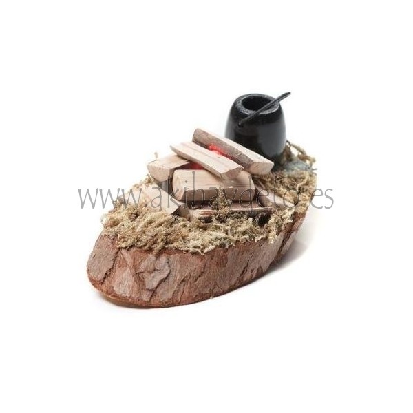 Sartén con Hoguera Iluminada de madera, para formar el Portal de Belén, de medidas 5 x 10,5 x 4 cm. (funciona con pila)