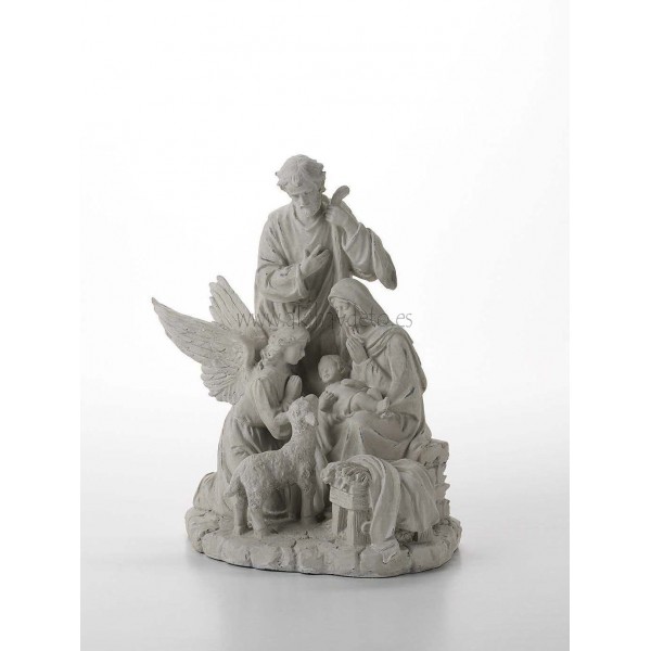 Figura decorativa nacimiento de resina medidas 29x35,5 cm, formado por San José, María, el Niño Jesús, una ovejita y un ángel.
