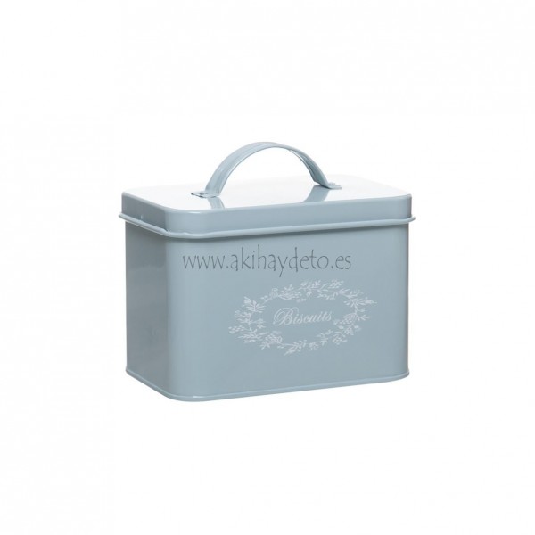 Caja en metal para galletas, color Vintage Blue, medidas 16x11x12 cm.