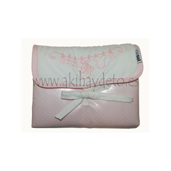Cambiador color rosa con lunares y bordados motivos bebé.