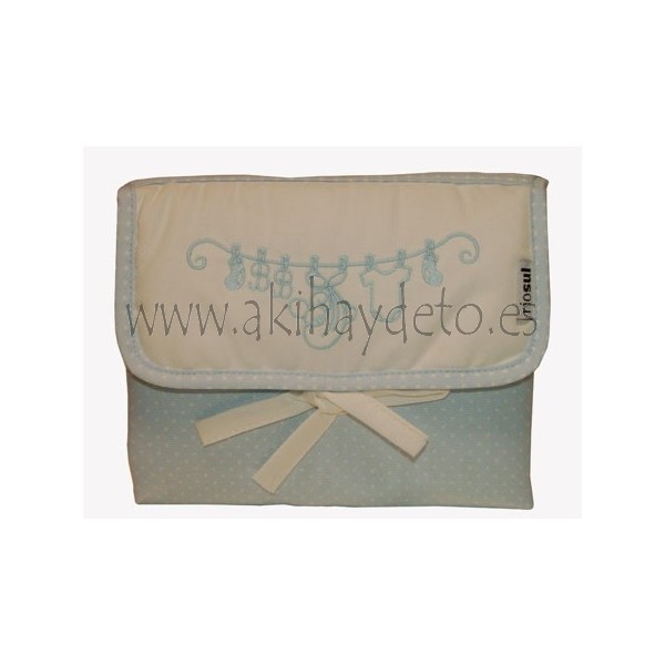 Cambiador color azul con lunares y bordados motivos bebé.