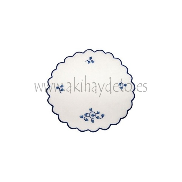 Conjunto de seis paños bandeja redonda con flores azules de algodon. Dos medidas.