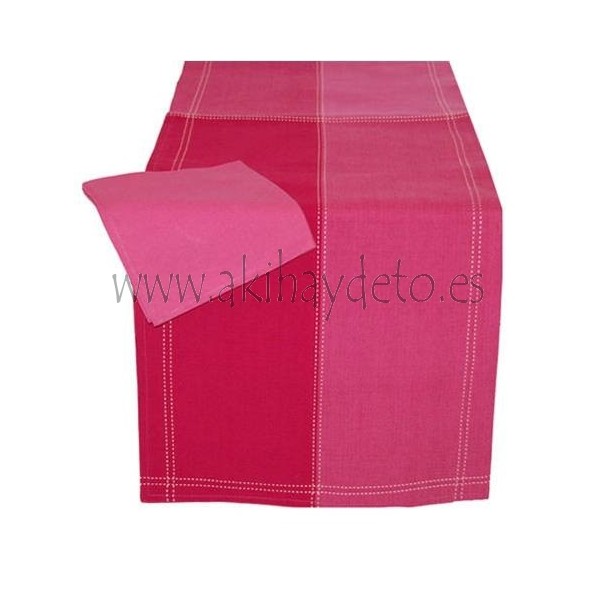 Conjunto camino de mesa con servilletas en tonos fucsias y medida 40 x 140 cm.