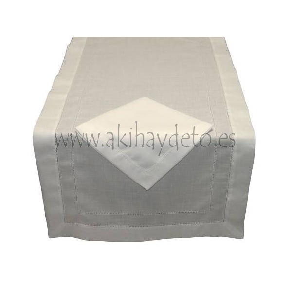 Par camino de mesa con cuatro servilletas en tonos grises y medida 50 x 150 cm.