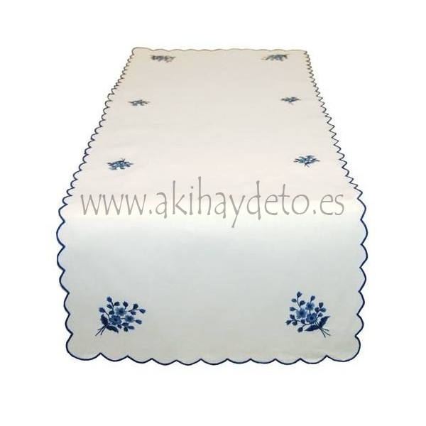 Runner cotton en blanco con detalles en azules. Disponible en varias medidas.