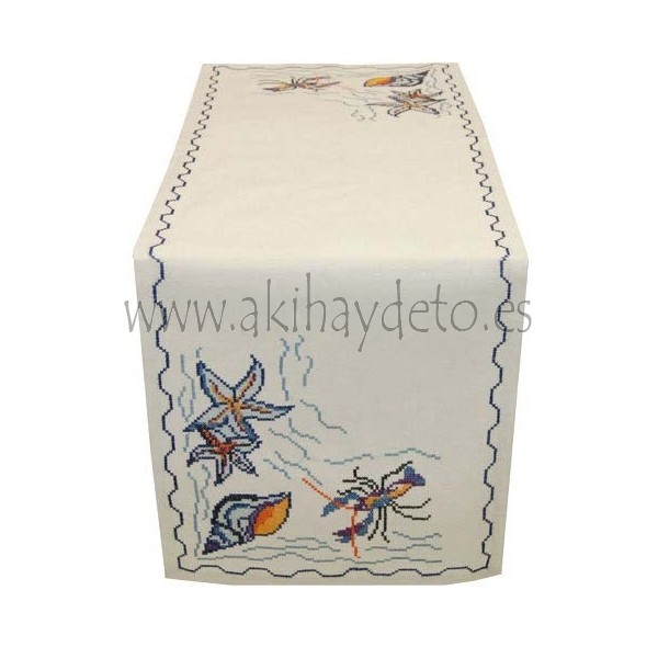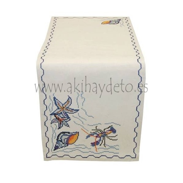 Conjunto de tres caminos de mesa en blanco roto con detalles de mar. Disponible en dos medidas.