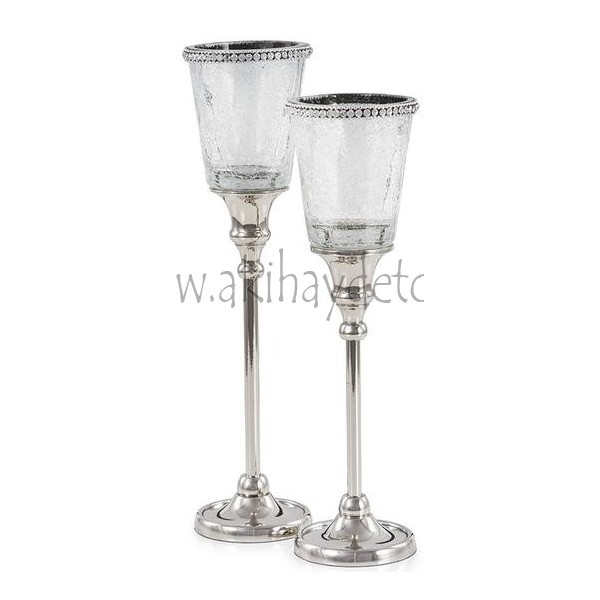Candelabro de Aluminio plateado y Vidrio con piedrecitas de Cristal. Disponible en dos medidas.