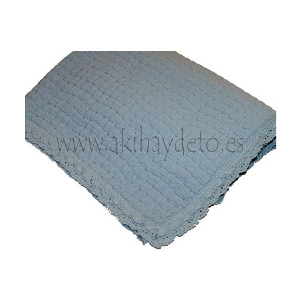 Colcha grace en azul y con puntilla. Disponible en varias medidas.