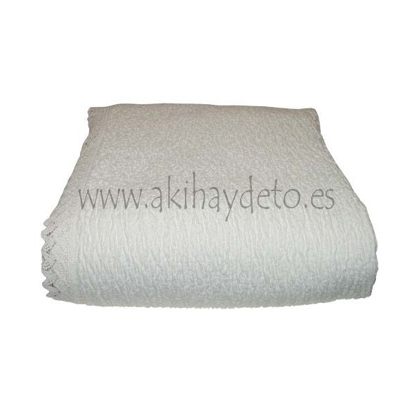 Colcha Laura con puntilla color blanco, medidas 250x270 cm.