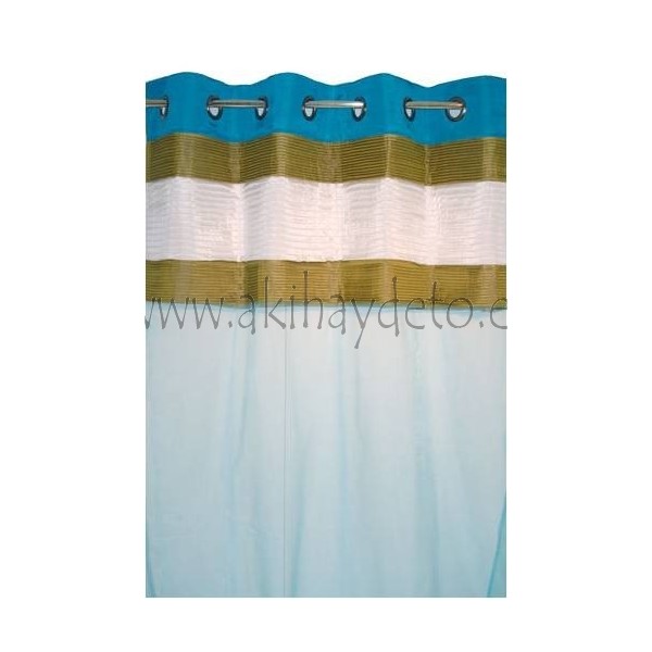 Par cortinas de color azul/verde/blanca de raya y medida 140 x 250 cm.