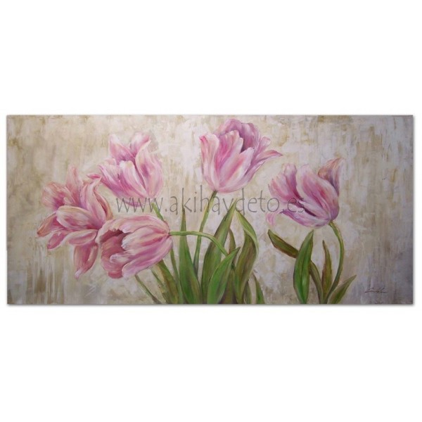 - Cuadro flores rosas, pintura al oleo en bastidor.