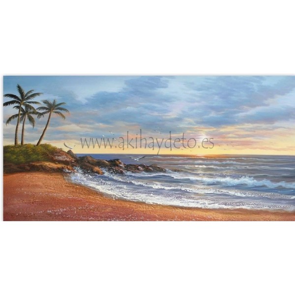 Cuadro mar con palmeras, bastidor pintura sobre tela. Medida 70 x 140 x 3.8 cm.