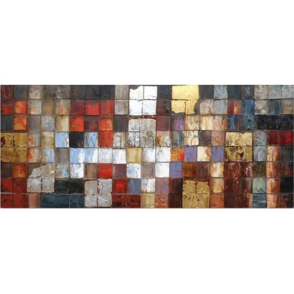 Cuadro abstracto de colores, bastidor cabecero pintura sobre tela. Medida 60 x 180 x 3.8 cm.