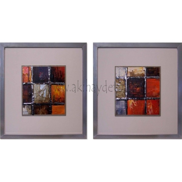 Set dos cuadros abstractos, marco en plata brillo. Medida 40 x 40 cm.