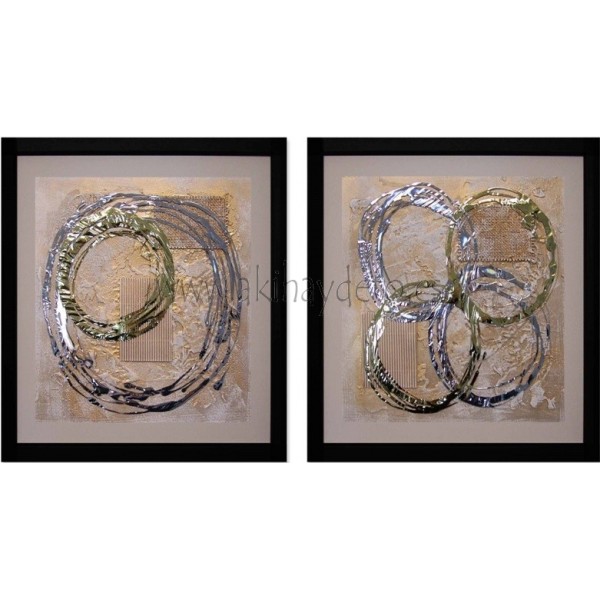 Set dos cuadros abstractos, marco en negro mate. Medida 40 x 40 cm.