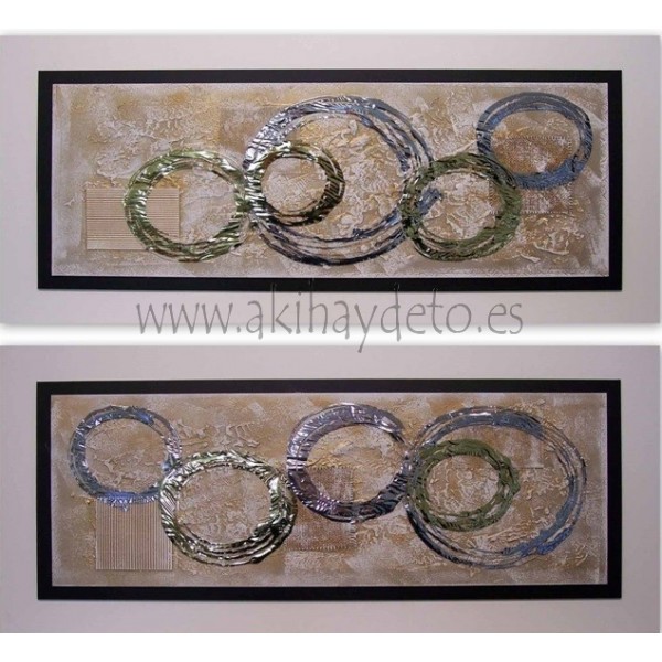 Set dos cuadros abstractos de circulos. Medida 40 x 80 x 3.8 cm.