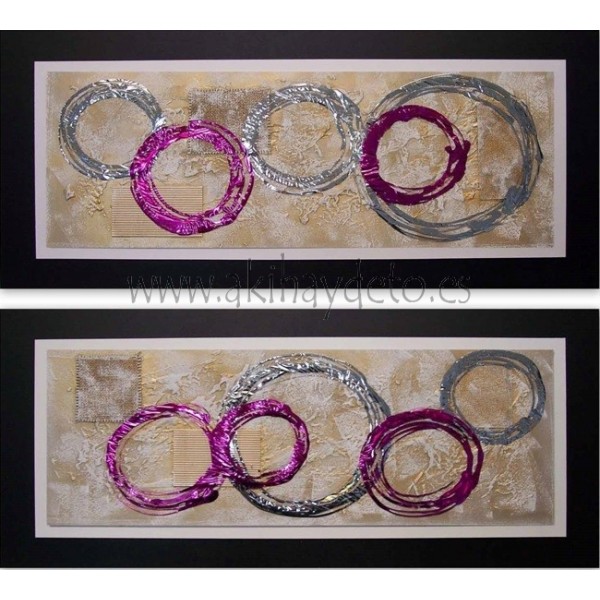Set dos cuadros abstractos de circulos. Medida 40 x 80 x 3.8 cm.