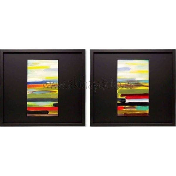 Set dos piezas pintura pinceladas de colores, fondo negro. Medida 53 x 53 cm.