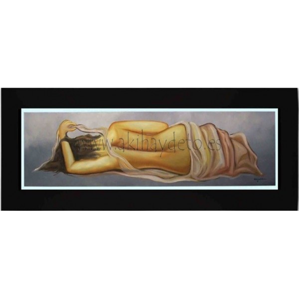 Cuadro mujer tumbada desnuda, cajon negro. Pintura al oleo. Medida 50 x 140 cm.