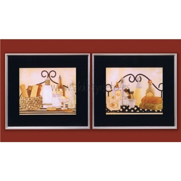 Cuadro set de baño, marco en plata brillo, precio en caja. Medida 22 x 27 cm.