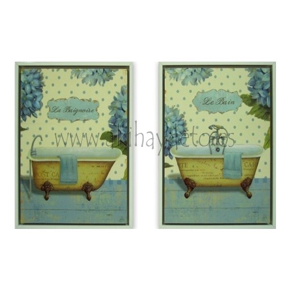 Cuadro bañeras en tonos azules, precio en caja. Medida 21 x 26 cm.