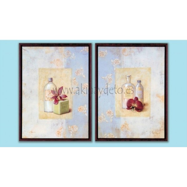 Cuadro botellas jabones, precio en tabla. Medida 30 x 40 cm.