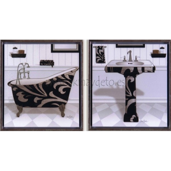 Cuadro baño en tonos marrones y negro, precio en caja. Medida 22 x 22 cm.