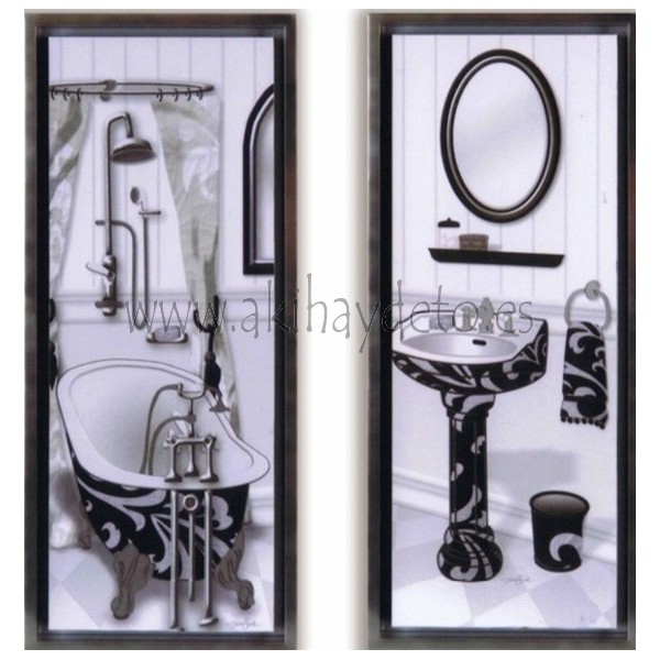Cuadro baño en tonos oscuros, precio en caja. Medida 12 x 27 cm.