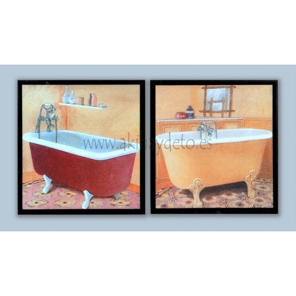 Cuadro bañeras en rojo y amarillo, precio en caja. Medida 24 x 24 cm.