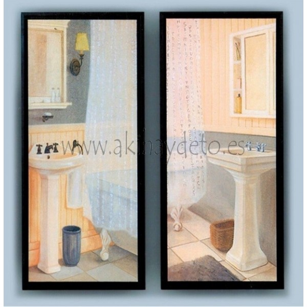 Cuadro lavabos en tonos claros, precio en caja. Medida 17 x 37 cm.