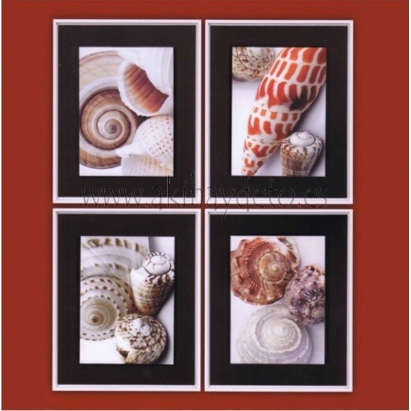 Cuadro conchas de mar, precio en caja. Medida 19 x 25 cm.