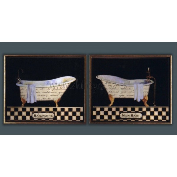 Cuadro bañeras con fondo negro, precio en caja. Medida 22 x 27 cm.