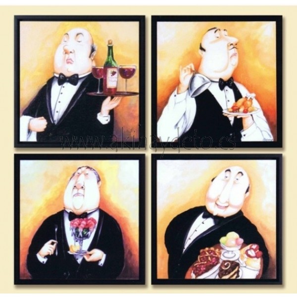 Cuadro camarero, precio en caja. Medida 22 x 22 cm.