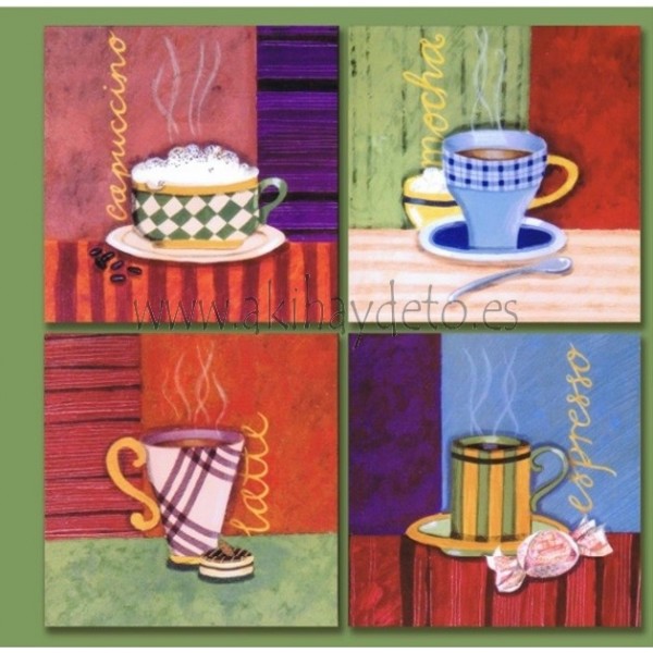 Cuadro tazas de cafe, precio en caja. Medida 26 x 26 cm.